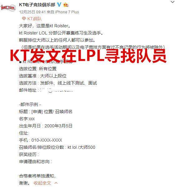 近日一则关于KT电子竞技俱乐部来华寻找青训队员的帖子火了,要知道前几年基本上都是LPL战队组团去LCK各种寻找选手,如今LCK也开始来LPL寻找选手了?这就牵扯到之前LPL的引援计划,使得LCK人才遭到大规模的流失,一直人才出现断档,简单地说就是LCK挖人挖到了断层!
