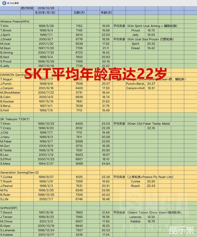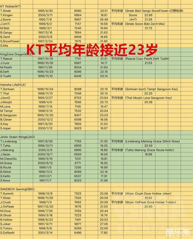 根据数据显示LCK的选手年龄基本上都是在20到22岁左右,一些刚刚满17岁的选手可以说少之又少,而那些依旧上场作战的主力选手可以说也算是LPL玩家的老朋友了,而LPL现在选手基本上都趋于年轻化,主要集中在17-19,甚至LPL不乏有很多99年,00年的选手!