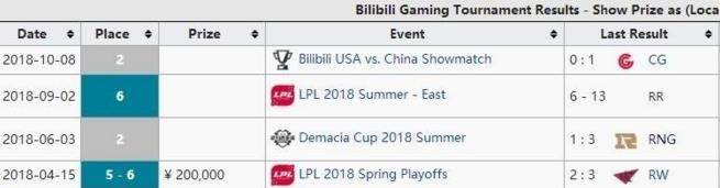 除了IG之外,RNG应该是2018年最成功的战队,除了S赛之外,基本上全部包揽,首先是LPL春季赛冠军奖金150W人民币,之后是MSI冠军52W美元,后面是德玛西亚杯夏季赛冠军50W人民币,接着是LPL夏季赛冠军150W人民币,最后是S8全球总决赛八强奖金26W美元,2018年总共拿到的奖金是886W人民币,不到IG总奖金的一半。