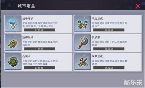 2、城池增益可以查看各种增益状态的情况。