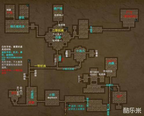 尸煞:踩完石板尸煞就会出来,直接逃跑打不过的。然后先进左边房间开小机关,右边门才能打开。