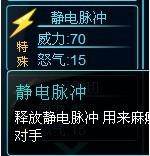 静电脉冲:能够使对手麻痹(此技能目前BUG,不能麻痹)