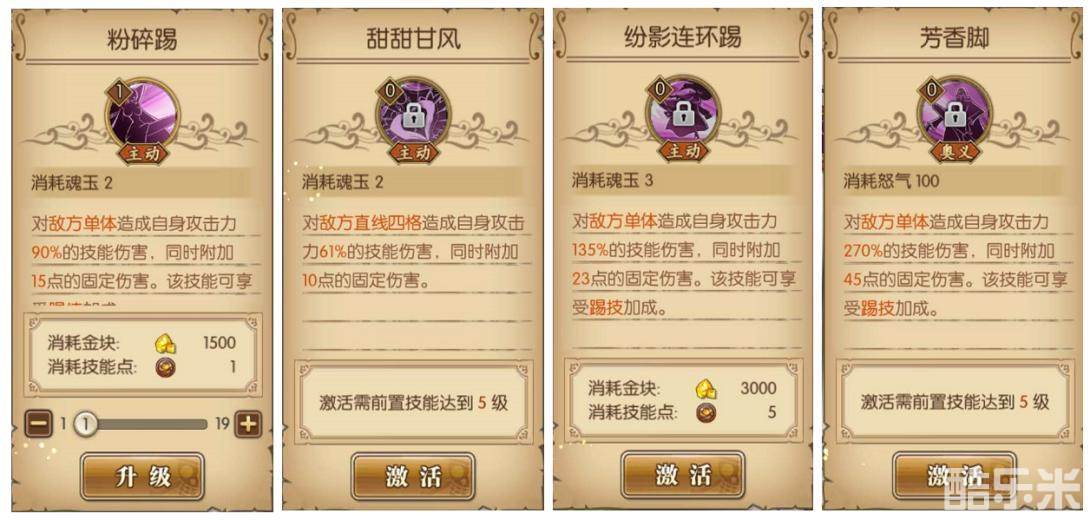 4.加点方面,目前吃满书的情况下,技能点暂时会富裕,80级如果不够的话,甜甜甘风可以适当的点一点,能开后面技能就行,粉碎踢可以只点到11级。