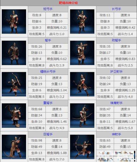 小编总结:弓兵和弩兵在战斗中可以利用自身超远的攻击距离对敌人的单位造成伤害,在守城中可以对没有登墙能力的敌人造成成吨伤害,攻城中一般躲在队伍的最中间输出,缺点就是防御能力比较低,所以队伍中就要把步兵排在最前面、冲车排在最后面保护弓兵,弓兵和弩兵是游戏前中后期最实用的兵种,建议着重生产。