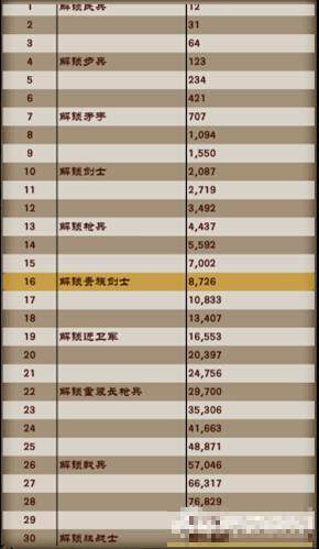 兵营介绍:从图中可以看出兵营是训练步兵的地方,升级兵营可以训练更多的兵种,准确的说步兵可以分为两个细兵种,枪兵和剑兵。兵营可以训练的兵种有十种,图中也标示了兵营相应等级可以训练的兵种。