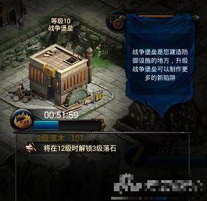 在与偶像中战争堡垒可以让玩家在游戏中建造陷阱,战争堡垒的等级越高,那么玩家可以建造的陷阱也就会更高级。在游戏中陷阱可以让敌方单位早攻击我们的时候损失大量的兵力,如此一来我们就可以很好的砸守城站中获得胜利。
