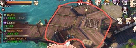 这个任务的地点在苇原城,是一个15级任务地图,我们可以打开世界地图,然后选中苇原城来到这里,然后再打开苇原城的地图,在地图的下方接近水的地方,有一个木制的四方,这里就是我们的任务地点,也就是图中红框标注的地方。