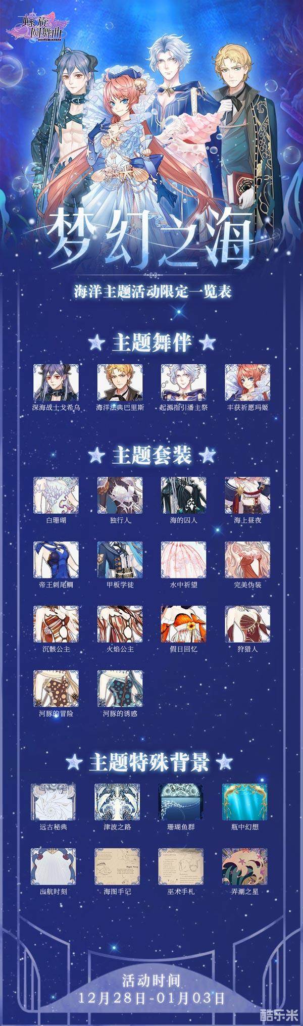 女性向换装冒险手游《螺旋圆舞曲》自上次蒸汽主题带大家探索飞行梦想之后,再次推出以海洋为主题的活动,带领大家共赴梦幻之海,感受凡瑟尔的奇妙海洋世界。