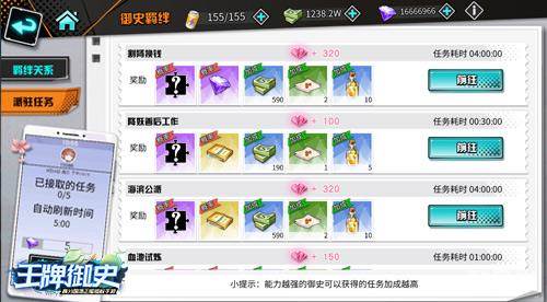 派驻任务不仅能够提升御史羁绊,开启衍生剧情,还将给予丰厚的任务奖励。因此羁绊玩法也是玩家获得游戏内资源,从而提升战力的重要版块。
