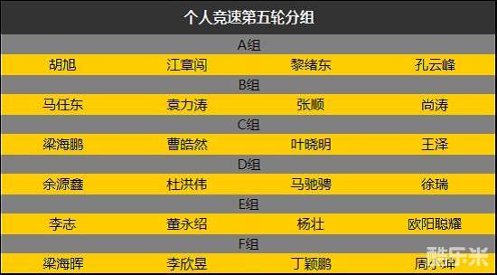恭喜胡旭、黎绪东、张顺、叶晓明、马驰骋、杨壮6位选手,在第四轮个人比赛中获得第一名,明日将进行个人竞速第五轮的小组争夺,让我们共同期待!