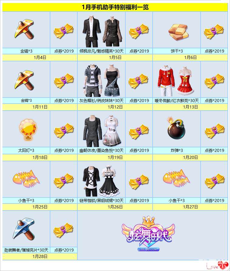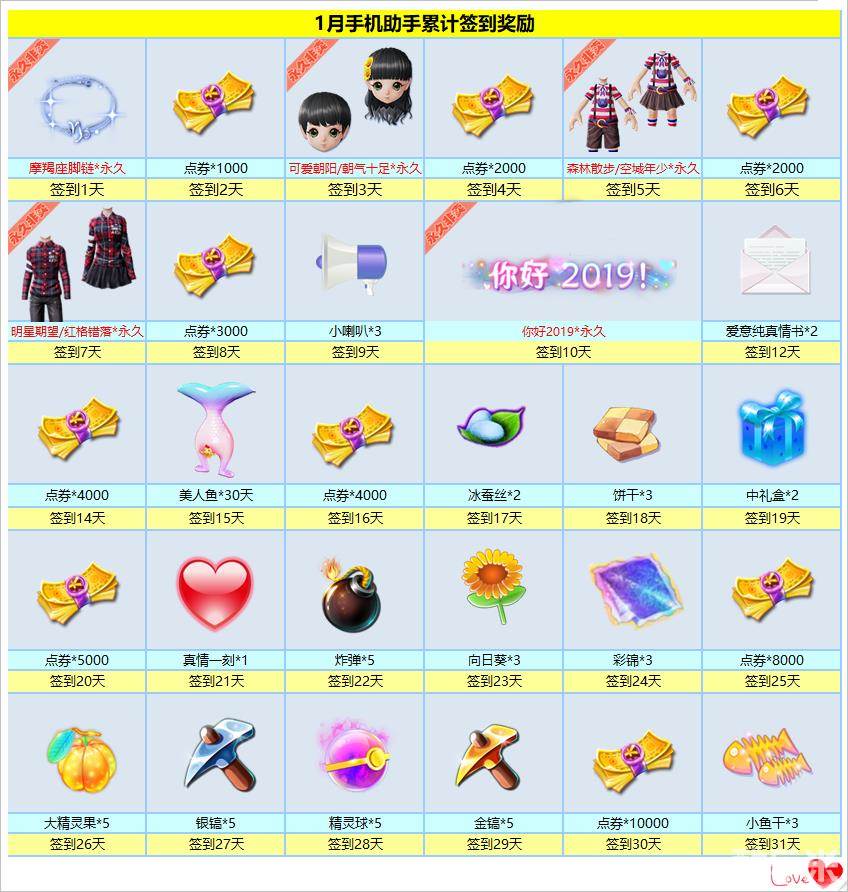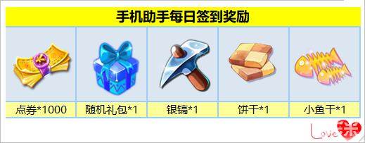 另外,1月手机助手每日签到,即可获得随机道具包+1000点券+银镐+饼干+小鱼干哦~这么多福利怎么可以错过呢,快来登录手机助手签到吧~