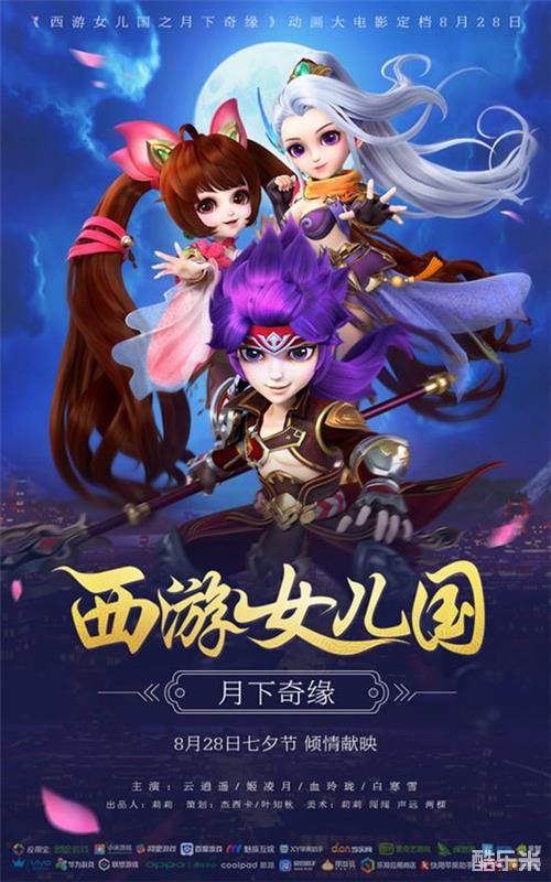 据了解,海报中的三个人物是动画电影《西游女儿国?月下奇缘》的主角,其中一头紫发、一脸正气的帅气小哥是游戏中的角色“云逍遥”,因为帅气的造型和单纯的性格在游戏中人气颇高。本次他出演动画电影,不知要与女儿国的小姐姐们上演怎样啼笑皆非的情节。