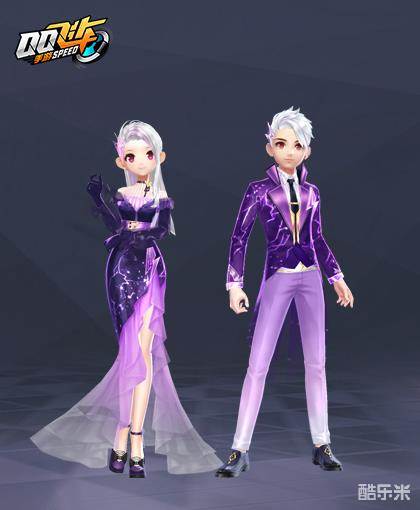 雷神之心套装酷炫登场,闪耀的雷电火花霸气炫目,绝对能让人爱不释手。女生的套装是鱼尾长裙,深紫色与浅紫色的搭配相得益彰,飘逸灵动的轻纱裙摆长长地垂在地上,美好而梦幻。男生的套装是深紫色燕尾礼服搭配浅紫色晕染长裤,闪耀在礼服上的雷电光芒令人目眩神迷,仿佛雷神降临!