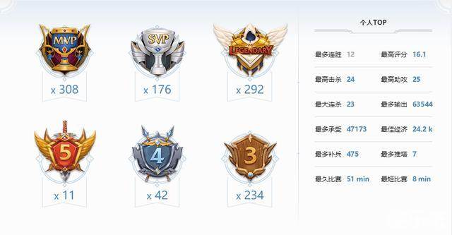 而在微笑的荣誉版中,也是拿到了308个MVP和176个SVP,五杀也拿到了11个,相信许多玩家都非常羡慕吧,这样的成就不知道能够和朋友吹多长时间了。