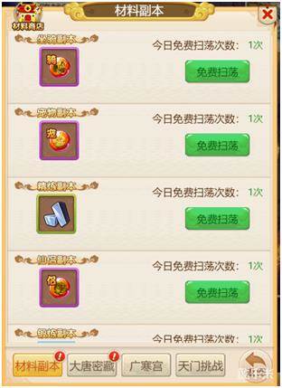玩家可以通过每日扫荡材料副本,获得对应系统的升级材料。