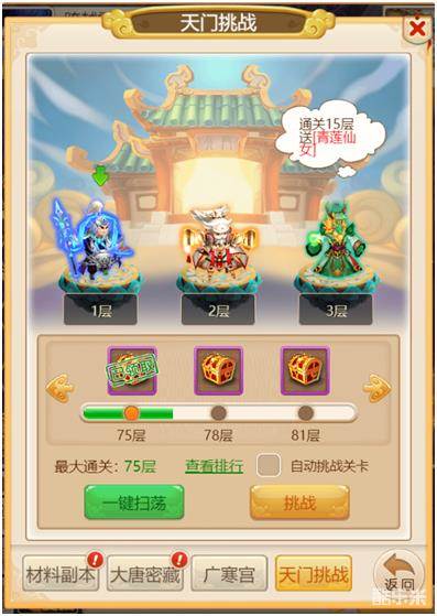 玩家通过完成天门挑战每一层,获得系统奖励,同时通过系统设定的层数,玩家可以获得对应的系统奖励。