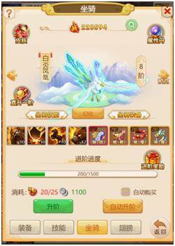 坐骑假如我们材料比较多的时候,我们可以点击自动升阶,他会持续消耗材料直到材料不足为止,就免去了我们一直点升阶的麻烦