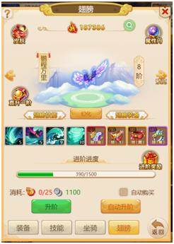 翅膀也是一样,材料足够时我们点一键升阶,就免去了重复操作的麻烦