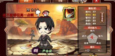 关于悠闲三国武将装备选择的小心得,武将的战斗力在游戏中差不多有一半是来自装备的,所以选择恰当的装备是每个玩家必须要关注的地方。属性分为武力,智力,耐力,统率,身法。其中武力和智力能分别给力将和智将提升攻击以及攻击抗性。不过一名力将如果提升大量智力甚至超过武力,那也只能增加一些法伤抗性,而不会让他变成一名智将。