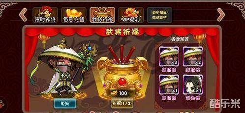 悠闲三国武将祈福玩法详细介绍,武将祈福玩法有点类似于招募武将一样,性质可能差不多,都是为了获取武将,但是玩法却是大大不同。武将祈福不用花费元宝,每天有一次免费的机会,当然你要是非要用元宝,那也行,不过花费还是很大的,一次一百元宝。