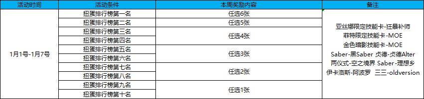 活动时间:1月1日-1月7日(扭蛋排行榜清零后)