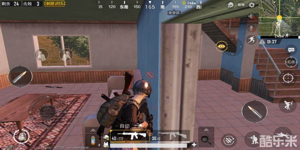 相信大家都知道,在第三人称模式下,可以通过移动地图左下角的自由镜头按键(小眼睛)身体不用动就可以获得自身周边环境的视野,灵活运用这一点对于进攻多层楼十分重要。首先环绕房子一周通过窗户、门口等地方获取基本的视野,确认安全后进入。在通过有视野死角的地方时,先靠近墙体,移动小眼睛来多获取一点视野,如果确认周围可视环境安全,那么敌人一定在墙边死角蹲守,所以我们在通过墙体的第一时间就把枪口对准视野的死角并开枪,那么正在死角处蹲守的敌人就无处可逃了。