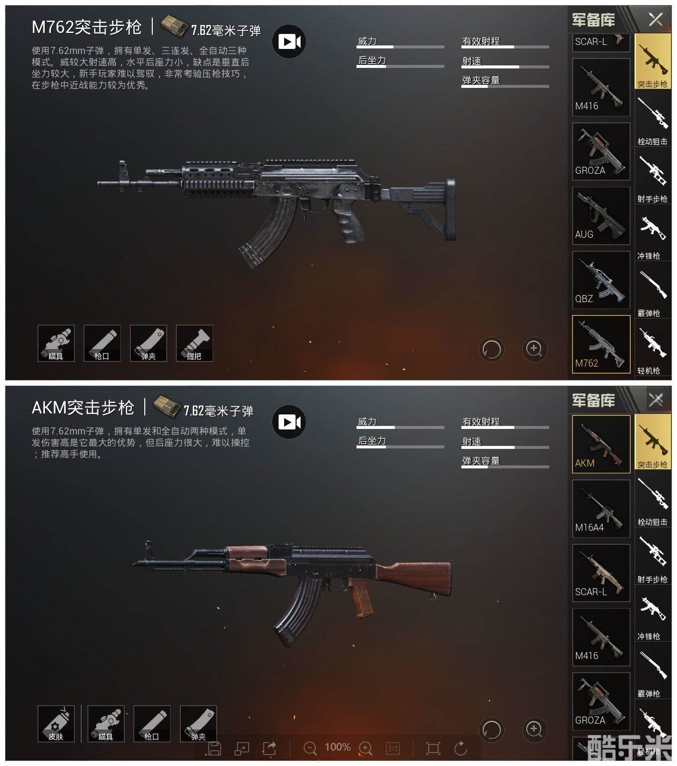 M762与AKM的威力属性相差不多,同为7.62毫米口径的突击步枪,威力的爆发值是绝对不容小觑的。M762在射速方面远超AKM一截,这也让M762更加适应中近距离的快节奏战斗。