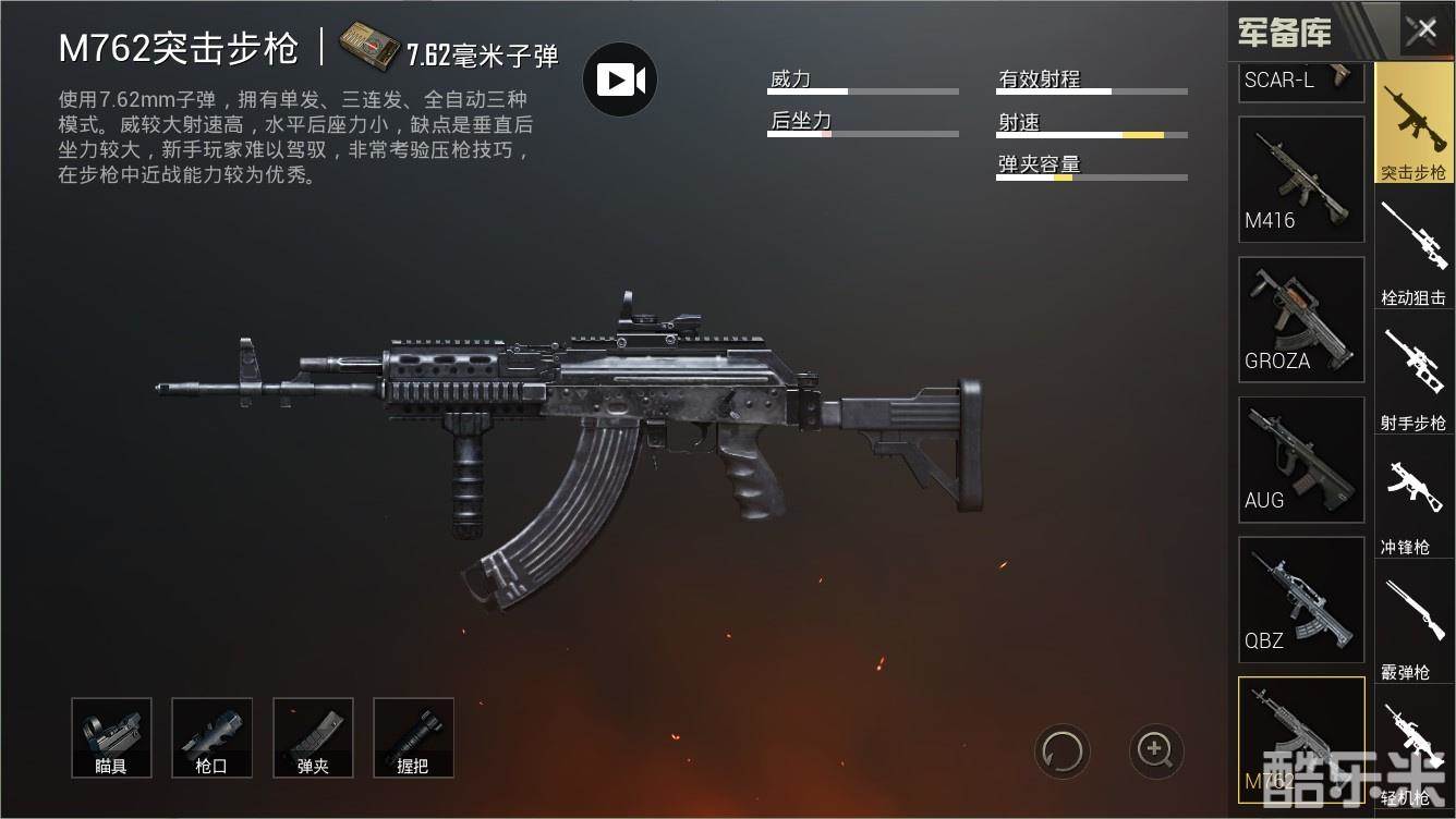 M762威力较大射速较快,支持多种开火模式,水平后坐力小,但缺点是垂直后坐力大,新手玩家难以驾驭,全自动开火模式下难以压枪。