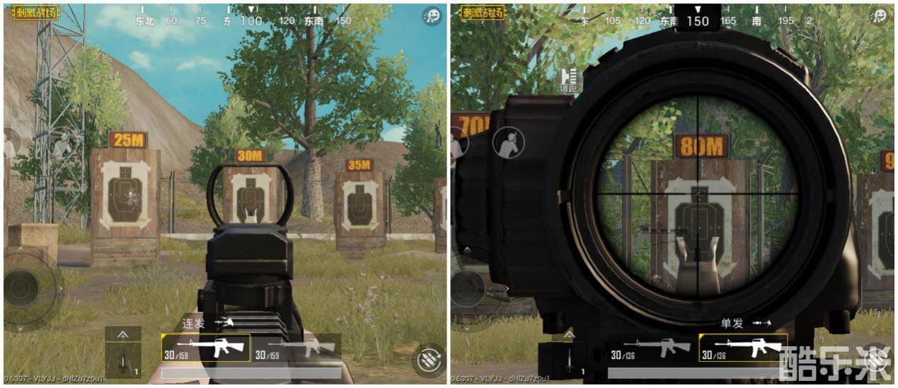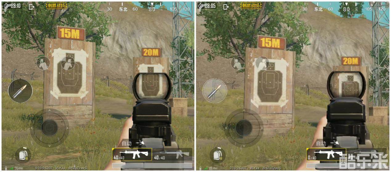 如图所示,二倍镜与四倍镜的子弹痕迹,都是第一发命中胸部,第三发子弹就命中在了头部,因此只要利用好这个连射模式,就可以较为容易更快地将敌人击倒,省去了全程压枪的操作。