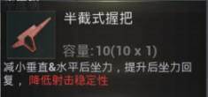 解析:半截式握把是五种握把里唯一同时减少垂直和水平后坐力的握把。大家都知道射击时由于后坐力的影响,射出去子弹的弹着点会发生不同程度向上、或者向左、向右的偏移。而同时减少垂直和水平的后坐力则会大大减小子弹的偏移程度,至于提升后坐力回复则是在停止射击后加快准心的回复速度。当然半截式握把也是唯一会削弱枪械属性的握把,装备后会降低射击稳定性,射击的稳定性可能不太能够直接用文字形容,更加直观的表现方式就是射击时手机屏幕的抖动程度,越稳定的枪械抖动程度越小。