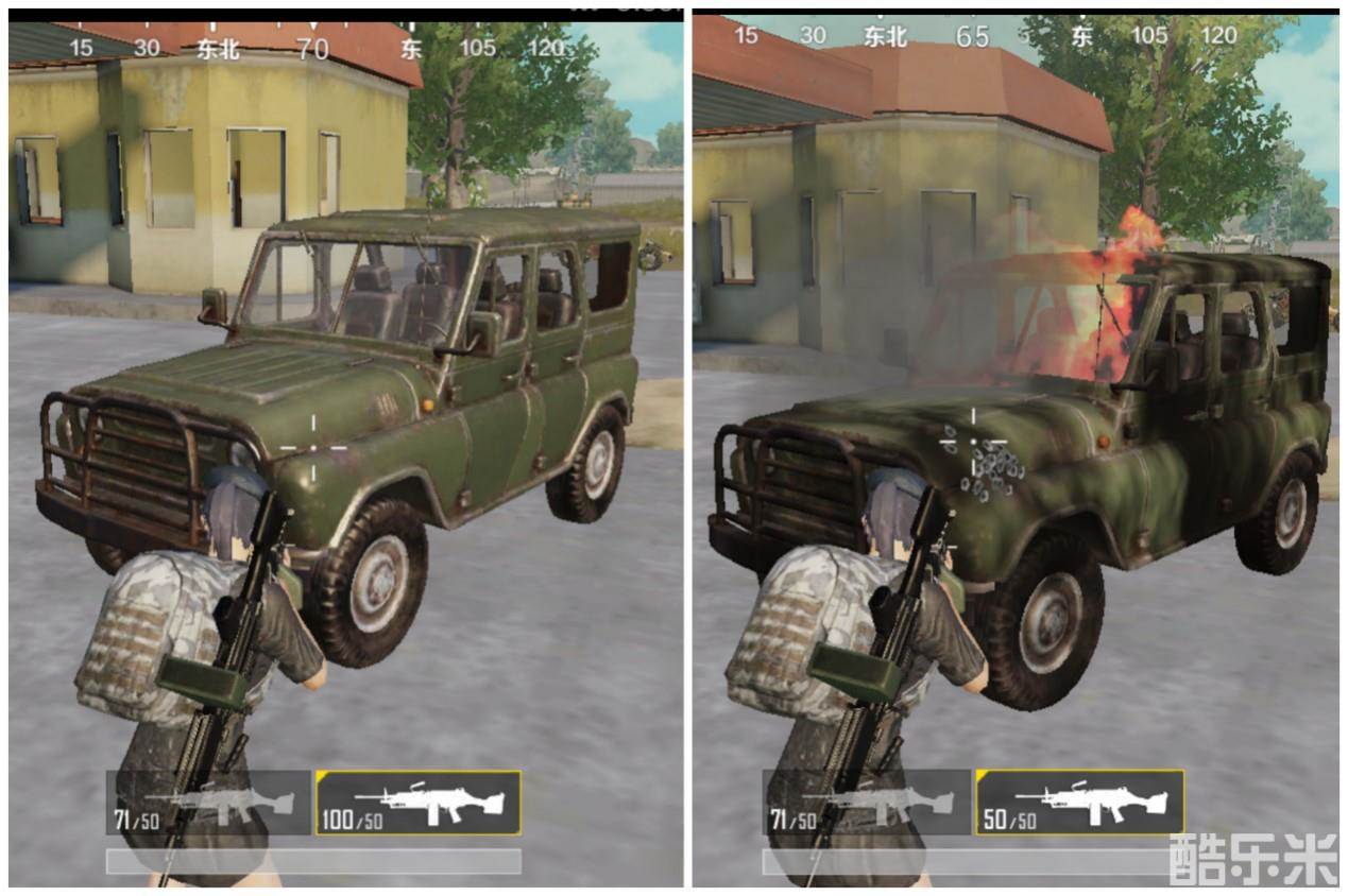 M249最厉害的一点在于扫车无敌,载具在游戏中是长距离转移地点十分重要的道具, 但车也有一点弊端就是当耐久度到0时就会爆炸,爆炸时车内的人也会死亡。敌人也无法在高速行驶跳车,不然就会直接倒地。如下图所见,M249只需要五十颗子弹就能将一辆100%耐久度的车打爆,即使在开枪时因为后坐力的原因导致有一些子弹偏移没有打在车上,但100车上发的弹容量也足够将车打爆。其它枪支起码需要换弹两次才能抵得上M249扫车时的输出。