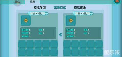 技能组合规则:主宠和副宠的所有携带技能均有一定概率保留下来继承到新幻化后的主宠身上,高灵性主宠会有更高概率保留技能。主宠和副宠所携带的相同技能保留概率和一般主或副宠携带的单一技能概率相同。所以说这个玩法就是为了整合两个宠物的技能,如果得到一个很不错的宠物,但是技能不好,或者是得到一个更好的宠物,但是还没学技能,而以前的培养宠物技能就可以通过幻化获取,但是有概率。