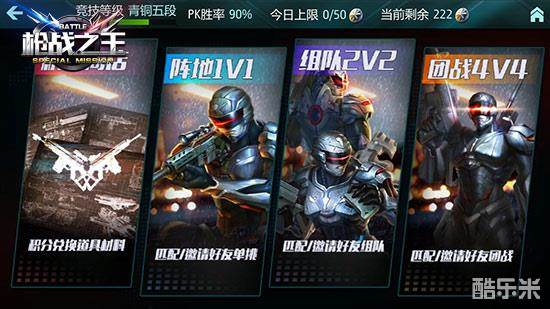 竞技场早已是激战手游中不可或缺的一项元素,可如何才能将与人博弈的乐趣发挥至极限却是一个难题,而在《枪战之王》之中竞技不仅不局限于装备、操作,连人数都有了极大变化,选择合适的战场发挥自己最大实力吧。