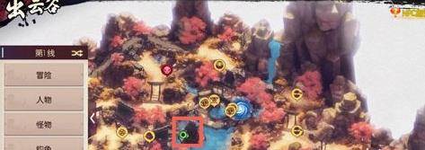 1、首先,来到【出云谷】这个地图,打开出云的地图,然后点击截图【红框】所标记的位置。