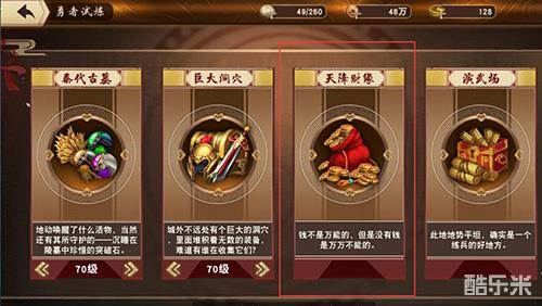 小编最近在研究“天将财源”和“演武场”。在经历了斗将台、十连连营、兵临城下和无尽之域后,回来在校场练练兵其实也不错哦。“天上掉馅饼”也是不错滴,还有钱拿哦~~那么今天给大家分享下“天将财源”和“演武场”的心得。