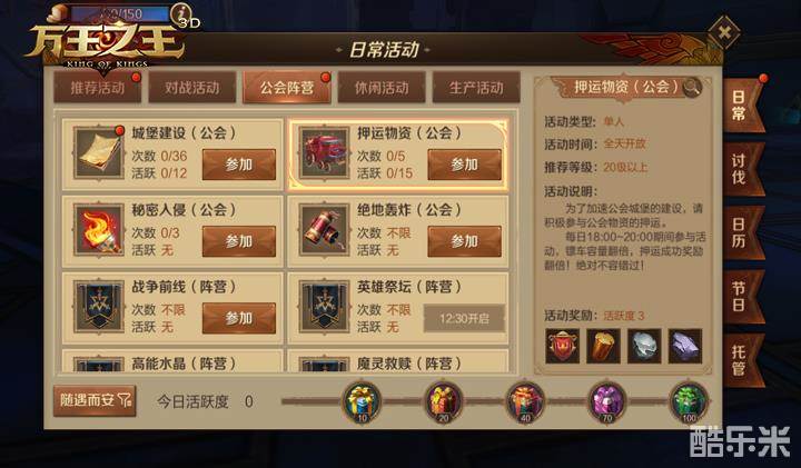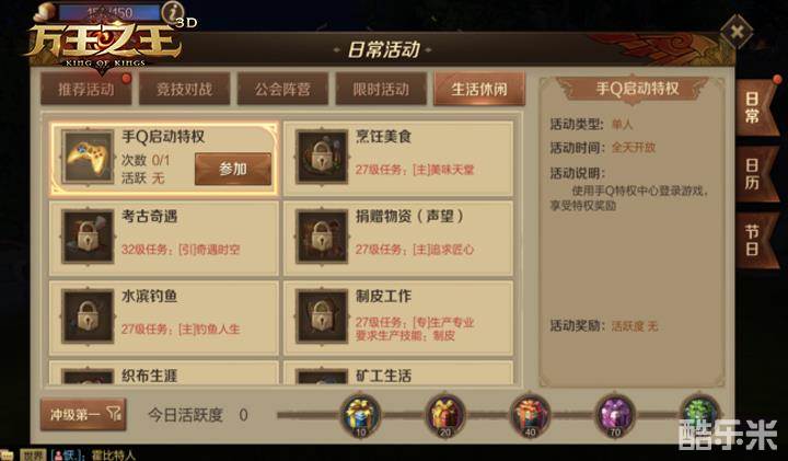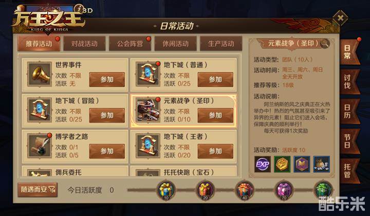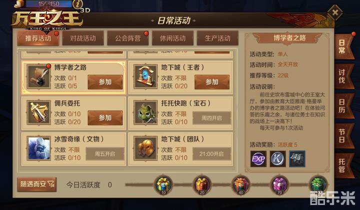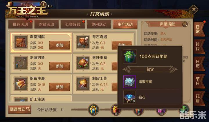 《万王之王3D》日常活动及活跃度的用处介绍