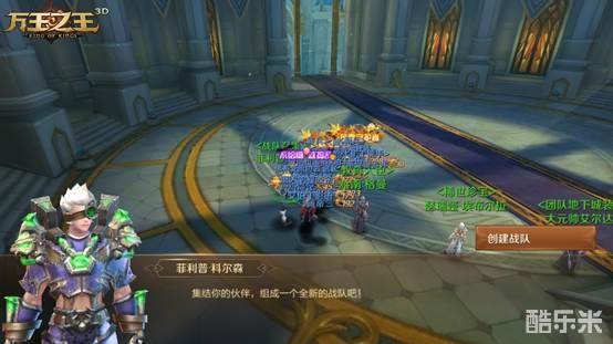 各位玩家如果想要创建战队的话,需要2—5人组队前往王室大厅菲利普·科尔森处,队长携带道具“战队召集令”,对话NPC后即可创建战队,“战队召集令”可在商店花费300钻石购买。需要注意的是,队员等级达到60级并且没有加入其它战队才能成功创建战队,战队最多可容纳12名玩家。