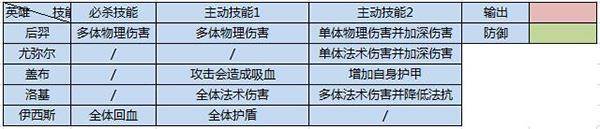 后羿以及尤弥尔的有加深伤害的技能,可以点杀某一个英雄,注意站位,增加秒杀的伤害,很容易造成5打4或者5打3的局面,专门针对竞技场中的奶妈队伍。