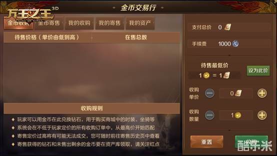 以上就是《万王之王3D》交易行玩法介绍,总的来说,交易行系统给平民玩家提供了一个福利平台,只要经营得当,各位玩家可以通过交易行用最少的金币获得价值不错的物品,各位玩家赶紧去尝试一下吧!