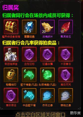 费归属者都可以获得一份参与奖励,并有几率获得较好奖励进入到行会拍卖行
