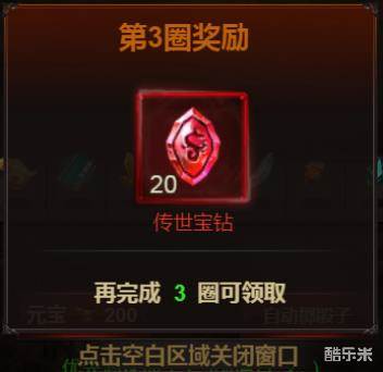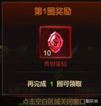 藏宝阁中会产出大量的传世宝钻,走完目标圈数后可领取对应的传世宝钻奖励。
