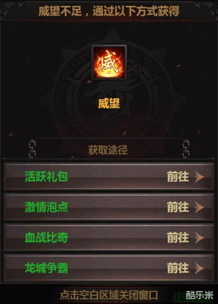 威望值可通过每日活跃奖励、激情泡点活动、龙城争霸活动、血战比奇活动来获得。