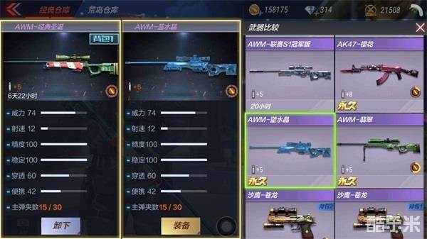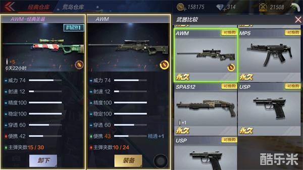 如图,AWM-圣诞和原始版AWM相比,前者主弹夹数高于后者,其他数据保持一致,即:前者续航时间更长,可在多种环境下纵横驰骋。