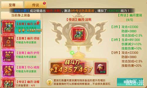 进阶的至尊套装通常难以满足我们的需求,传说套装则是每一位《剑逆八荒》巅峰玩家的终极需求!我们还能在至尊套装的基础上加以锻造升级为传说套装。相比于前者,传说套装的优势显而易见——套装属性的翻倍式增加。传说在手、天下我有,实战中能否逆天改命一定程度上取决于此!