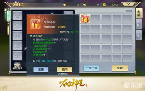 为庆祝新版本上线,本周末(1月4日到1月5日)玩家登录游戏还有双重福利礼包,当天消费元宝达到指定目标还有坐骑技能书、大型血脉灵晶、各类宝箱等奖励。欢乐的周末时光即将开始,不如就来九天大陆热血修仙吧!