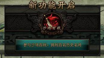 玩家通过34级经典战役“三英战虎牢”后即可激活沙场百战功能。激活后弹出如下“新功能开启面板”。