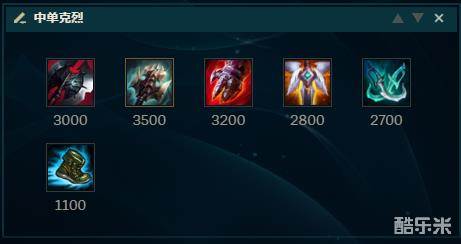 出装方面,前期核心是黑切+提亚马特,然后再考虑合成,中期要克烈开团的话,做复活甲。如果不需要就做血手,最后一件装备一般是选择防御装备,兰顿或是振奋都可以,如果想极限输出,绿叉也是不错的选择。