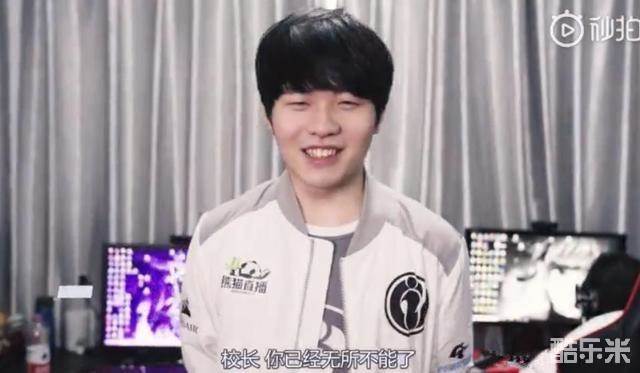 IG中单Rookie的祝福语是:校长,你已经无所不能了,我也没什么拿得出手的礼物,那么我这个年度最佳外援奖杯送给你。