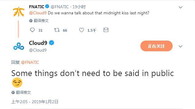 昨晚,Fnatic与Cloud 9的官推在推特上进行了一波激情暧昧的互动。