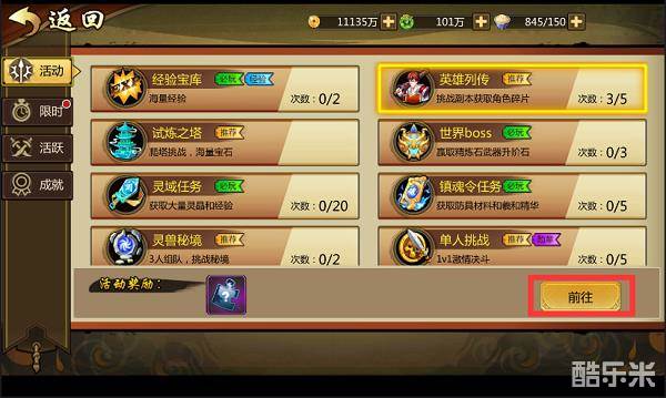 可以通过点击日常副本按钮,进入到活动界面,然后选择英雄列传,点击前往。
